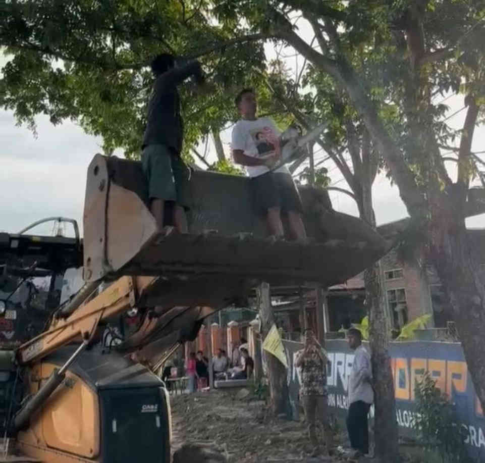 Ia menggunakan peralatan berat seperti excavator dan mesin pemotong guna merapikan pepohonan rindang di kawasan tersebut, menunjukkan semangat kerja nyata untuk masyarakat.