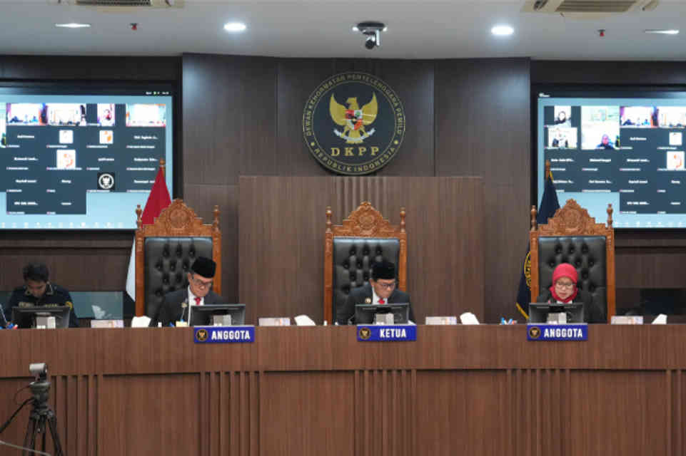 MAKASSAR — Dewan Kehormatan Penyelenggara Pemilu (DKPP) tetap melanjutkan sidang pemeriksaan perkara dugaan pelanggaran Kode Etik Penyelenggara Pemilu (KEPP) di Kantor KPU Provinsi Sulawesi Selatan, Rabu kemarin. Meskipun Teradu Heriyanto selaku Anggota Bawaslu Kabupaten Wajo tidak hadir.