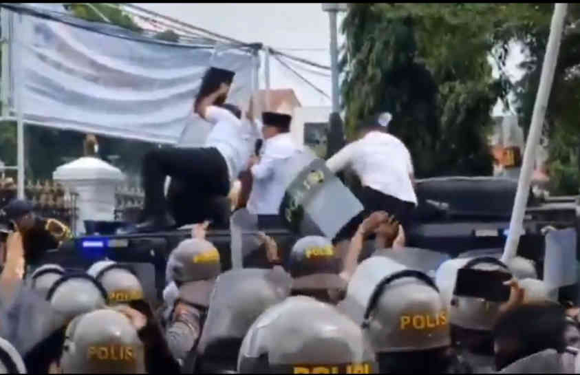 Namun, saat itu massa justru melemparkan air minum dan sandal ke arah Sudewo. Ajudan dan anggota Brimob segera melindunginya dengan tameng, namun lemparan tersebut terus datang, memaksa Sudewo kembali ke dalam mobil rantis.