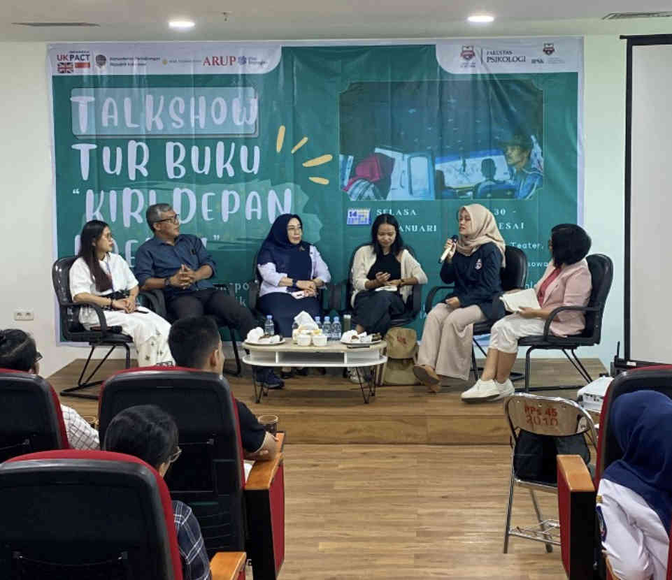 MAKASSAR—Fakultas Psikologi Universitas Bosowa (Unibos) melalui Pusat Studi Intervensi Psikologi Sosial dan Kebencanaan bekerja sama dengan Konsorsium II (WRI, ARUP, dan Vital Strategies) menggelar Talkshow Tur Buku bertajuk “Kiri Depan Daeng!”, di Ruang Teater 1, Menara Bosowa, lantai 7, Selasa kemarin.