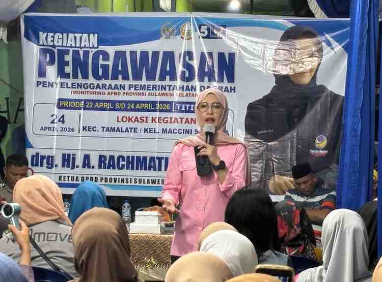 Lintaskabar.id, Makassar – Ketua DPRD Provinsi Sulawesi Selatan Andi Rachmatika Dewi melakukan pengawasan penyelenggaraan pemerintahan daerah melalui monitoring APBD Sulsel di Kecamatan Tamalate, Kelurahan Maccini Sombala, Jumat (24/4) malam.