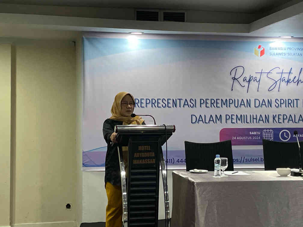 Makassar– Bawaslu Provinsi Sulawesi Selatan mengadakan rapat stakeholder dengan tema representasi perempuan dan semangat pengawasan partisipatif dalam menyongsong pemilihan kepala daerah 2024, rapat stakeholder tersebut digelar di Makassar.