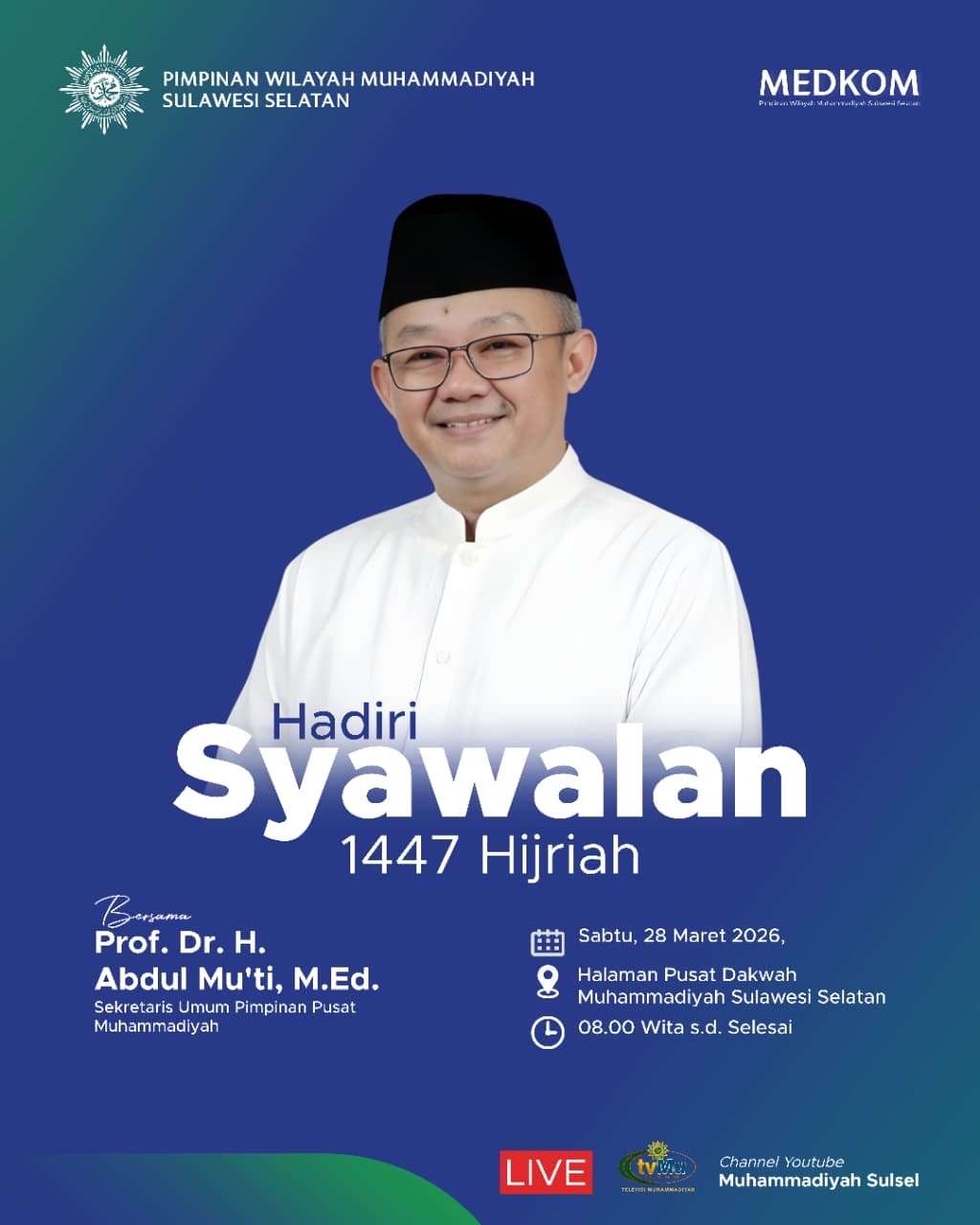 Lintaskabar.id, Makassar — Pimpinan Wilayah Muhammadiyah Sulawesi Selatan memajukan Syawalan 1447 Hijriah menjadi Sabtu, 28 Maret 2026.