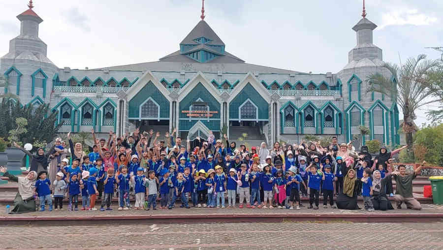 Sebagai bentuk aksi nyata dalam menjaga lingkungan, para peserta diajak mengunjungi Masjid Al-Markaz untuk melakukan kegiatan bersih-bersih di pekarangan masjid, mengajarkan anak-anak pentingnya menjaga kebersihan di ruang publik.