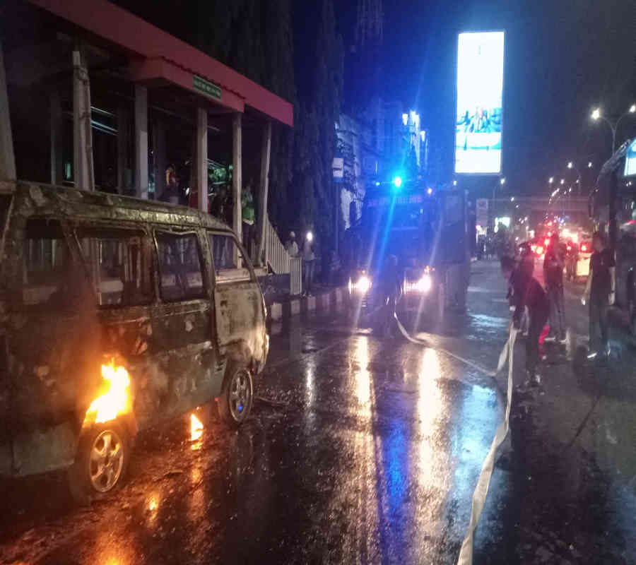 Angkot Terbakar Imbas Demo Tolak Dinasti Politik Tim Inafis Lakukan Penyelidikan